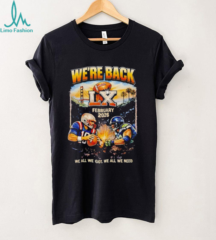 (Super Bowl LX February 2026 Matchup We All We Got Football Fan T Shirt)Super Bowl LX February 2026 Matchup We All We Got Football Fan T Shirt, Treat yourself or make a great gift for your loved ones