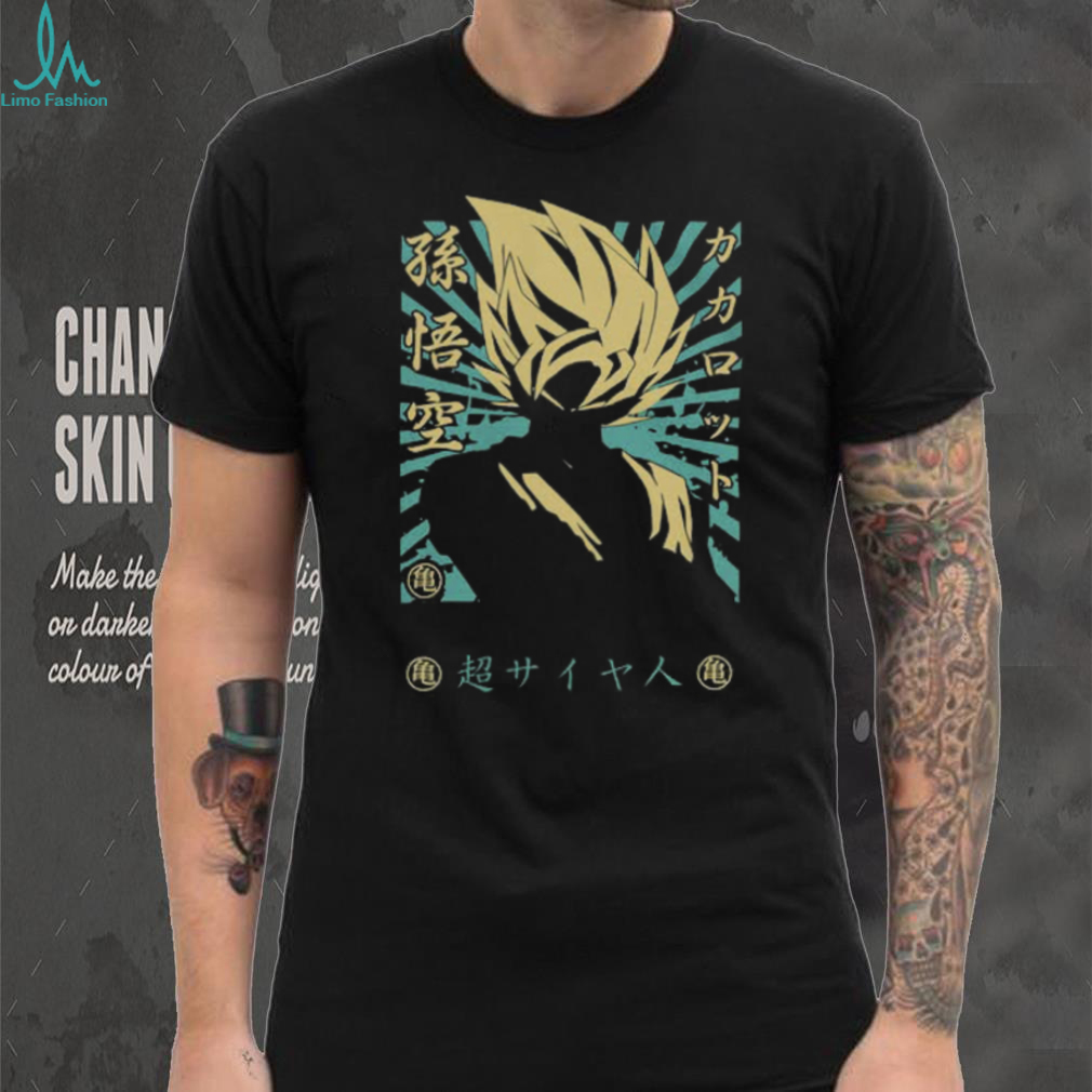 (Super Saiyan Goku Silhouette Japanese Kanji Sunburst Tee)Super Saiyan Goku Silhouette Japanese Kanji Sunburst Tee, Treat yourself or make a great gift for your loved ones