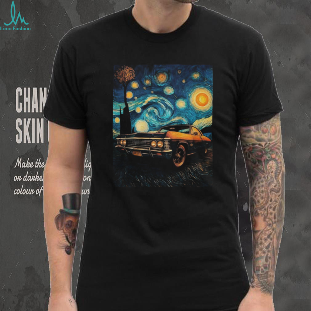 (Supernatural Impala “Baby” Starry Night Van Gogh Style T Shirt)Supernatural Impala “Baby” Starry Night Van Gogh Style T Shirt, Treat yourself or make a great gift for your loved ones