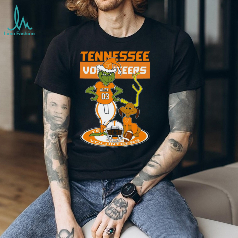 Tennessee Volunteers Custom Grinch and Dog Christmas Tee – Personalized NCAA Football Shirt – Holiday Outfit & Fan Gift Idea