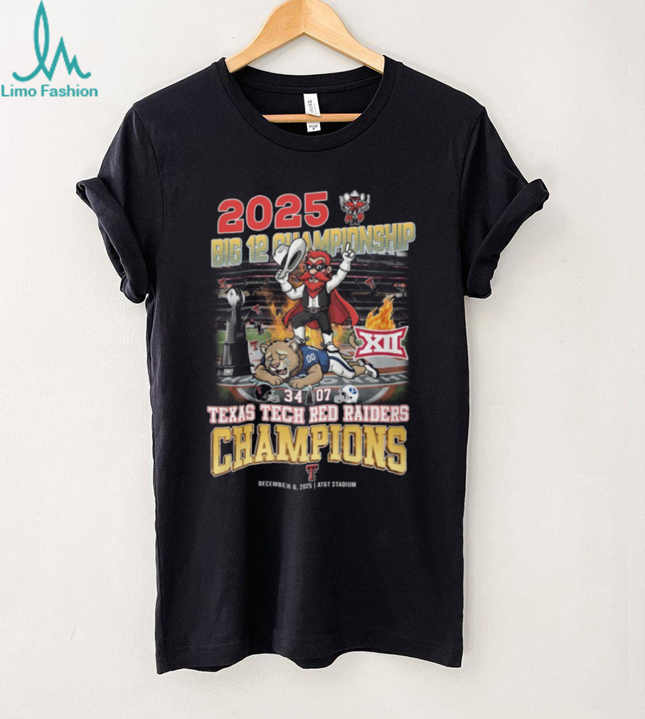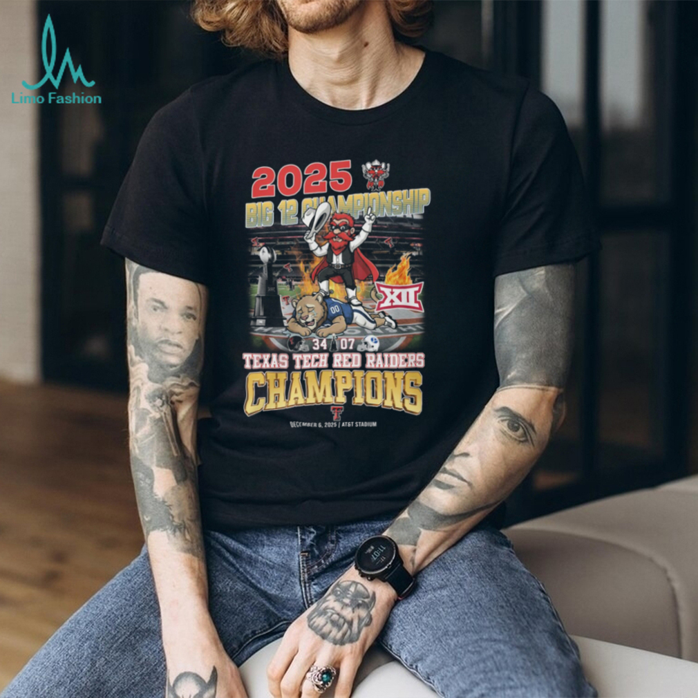 ()Texas Tech Red Raiders 2025 Big 12 Football Champions Mascot Short Sleeve T Shirt, Treat yourself or make a great gift for your loved ones