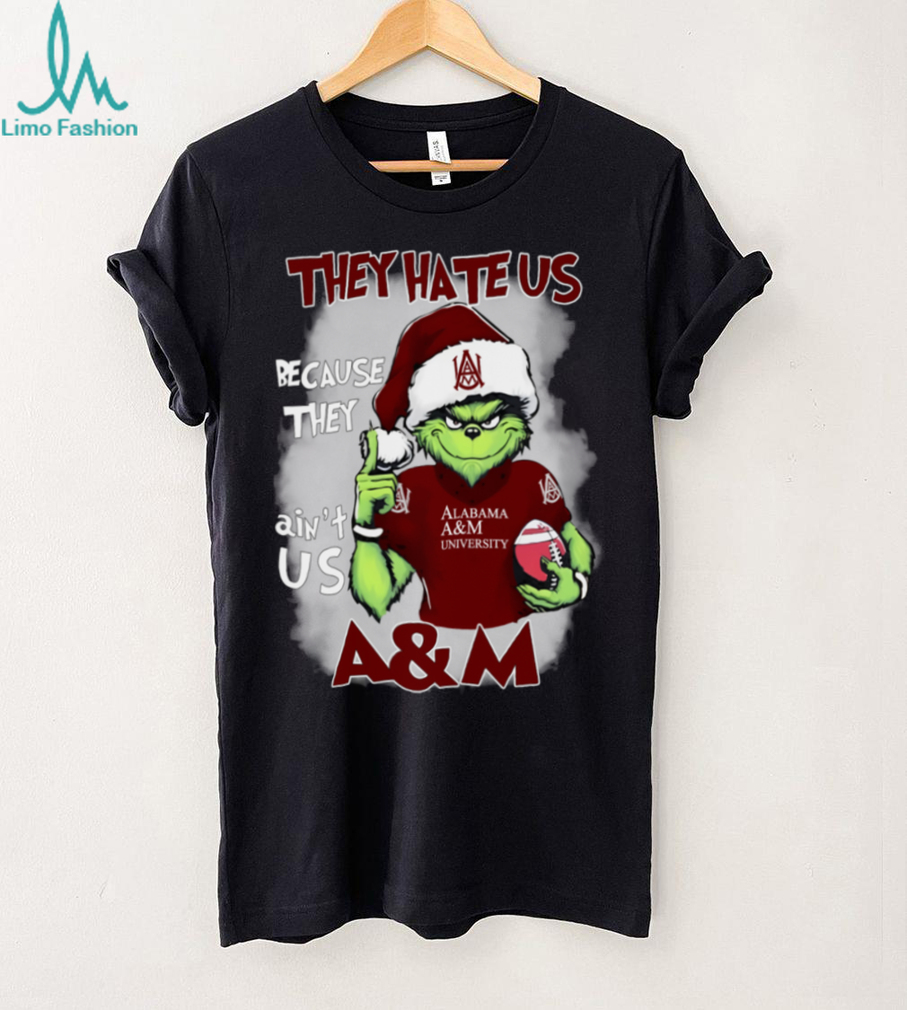 Show your Bulldog pride and holiday cheer with this awesome The Grinch “They Hate Us Because They Ain’t Us” Alabama A&M Christmas T-Shirt! This tee combines your love for Alabama A&M with the Grinch’s classic snark. Picture the Grinch decked out in maroon and white, ready to steal the show (or maybe just the best seat at the Christmas feast!). It’s a unique way to celebrate your team and the holidays. Perfect for students, alumni, or anyone who loves Alabama A&M. Wear it on campus, to holiday gatherings, or just to show your Bulldog spirit!