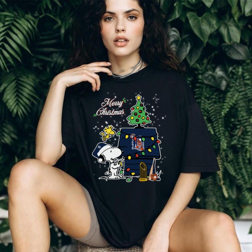 This Tigers Shop Merry Christmas With Snoopy Baby Detroit Tigers T Shirt uniquely combines the beloved Snoopy with the iconic Detroit Tigers logo, set against a cheerful Christmas scene. Crafted from a soft, breathable cotton blend, this infant tee ensures exceptional comfort for your baby, whether they’re unwrapping gifts or watching the game with family. The vibrant, durable print features Snoopy in a festive Santa hat, surrounded by classic Tigers colors and holiday motifs. Available in a range of infant sizes, this shirt offers a gentle and perfect fit for your little fan, allowing them to celebrate their first holiday season with undeniable team pride. It’s the ultimate solution for parents and gift-givers who want to blend a love for baseball with sweet, seasonal style, creating a truly memorable and practical garment.