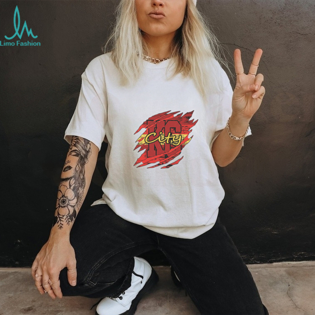 Embrace your Kansas City roots with the distinctive ‘Torn KC City T Shirt’. Its unique design features a distressed, vintage-inspired “torn” graphic that speaks to the city’s enduring character. Crafted from a soft, breathable cotton blend, this shirt offers comfort for all-day wear, whether you’re exploring the Crossroads, catching a game, or just relaxing at home. The relaxed fit ensures it’s a versatile addition to any wardrobe, making it an instant favorite for everyday pride.