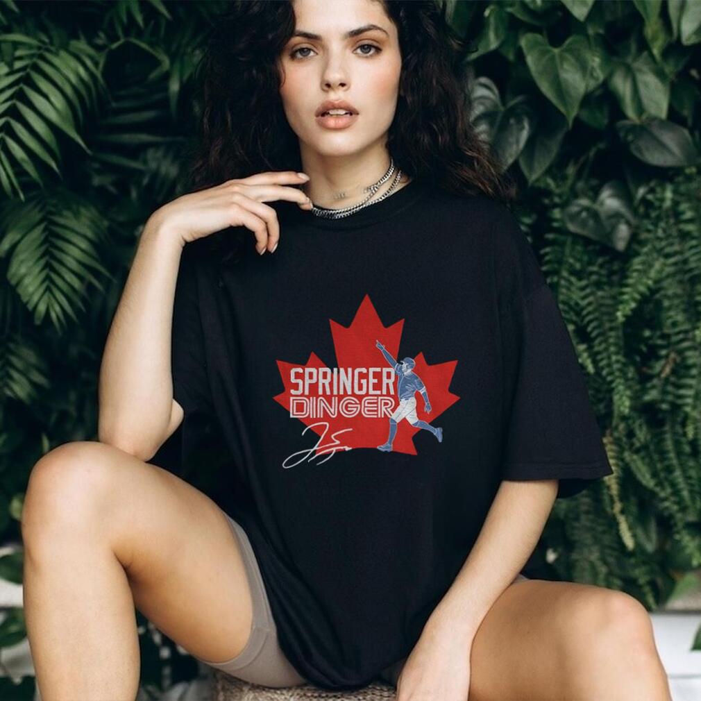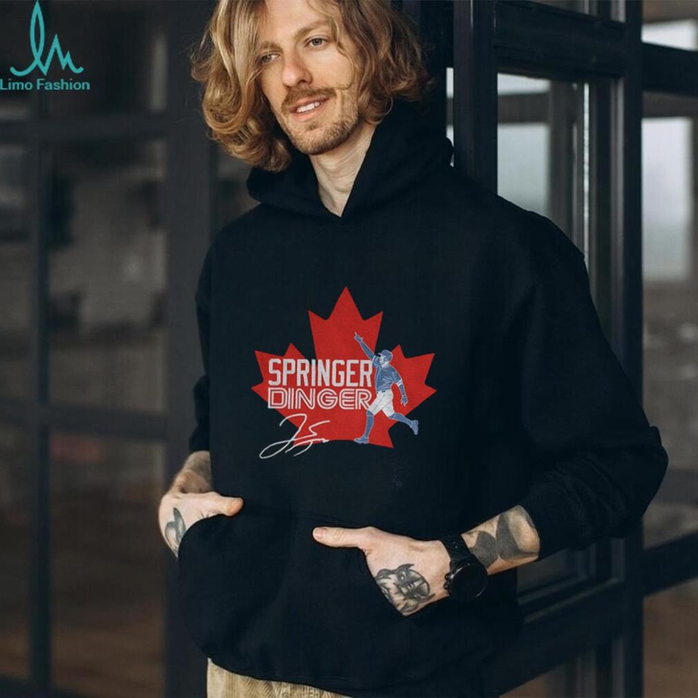 Get ready for October baseball with this Trey Yesavage Springer Dinger Toronto Blue Jays shirt! Celebrate the Blue Jays’ playoff run and World Series aspirations with this signature tee. Whether you’re cheering from the stands or your couch, this shirt is the perfect way to show your Blue Jays pride!
