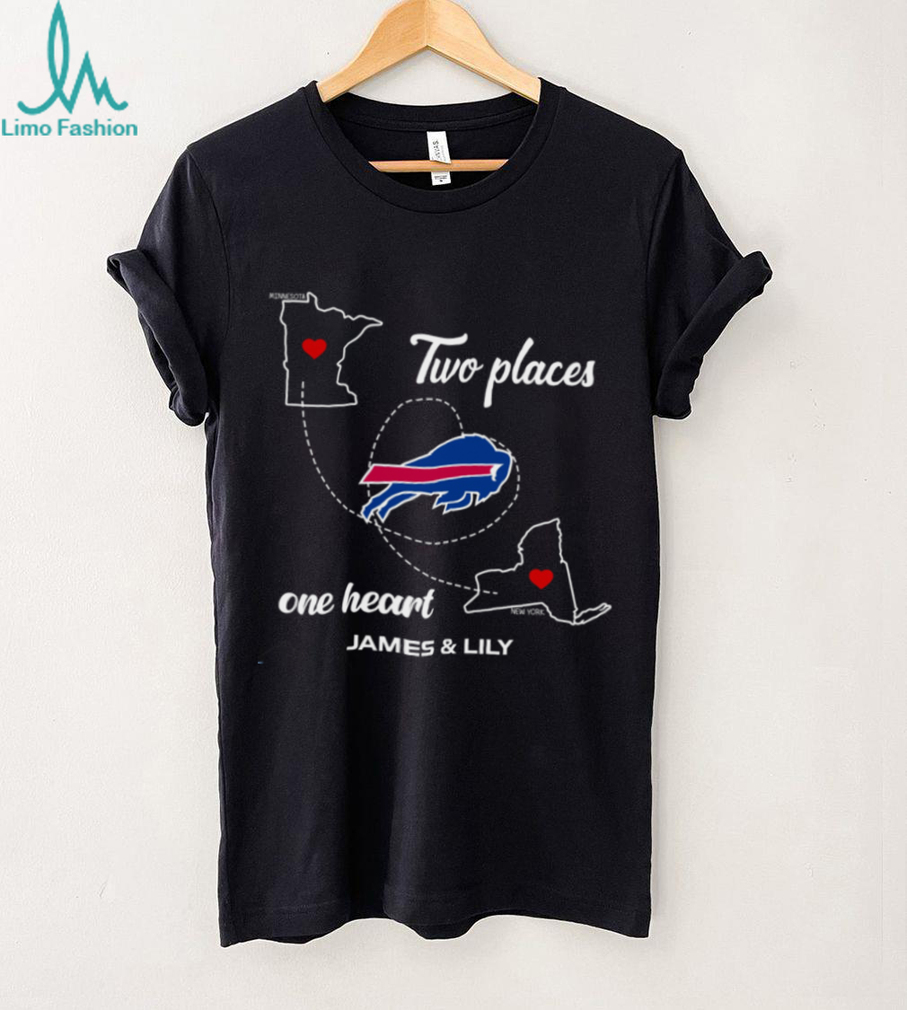 To keep your “Two Places, One Heart Buffalo Bills shirt” looking great, wash it inside out with cold water on a gentle cycle. Tumble dry low or air dry. Avoid ironing directly on the design.