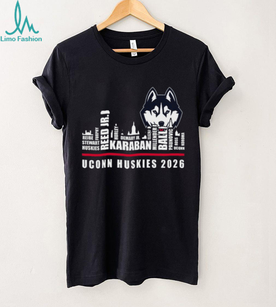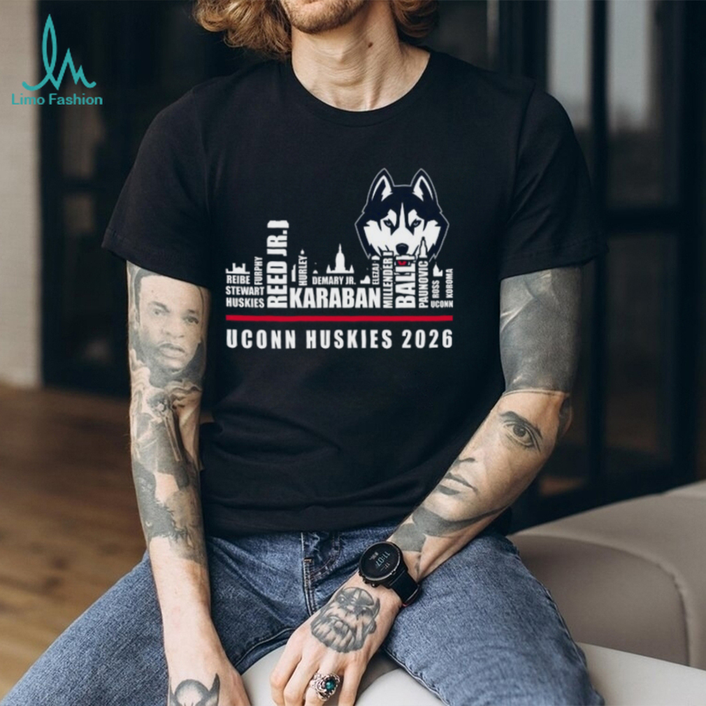 (UConn Huskies 2026 Roster Skyline Basketball Black T Shirt)UConn Huskies 2026 Roster Skyline Basketball Black T Shirt, Treat yourself or make a great gift for your loved ones