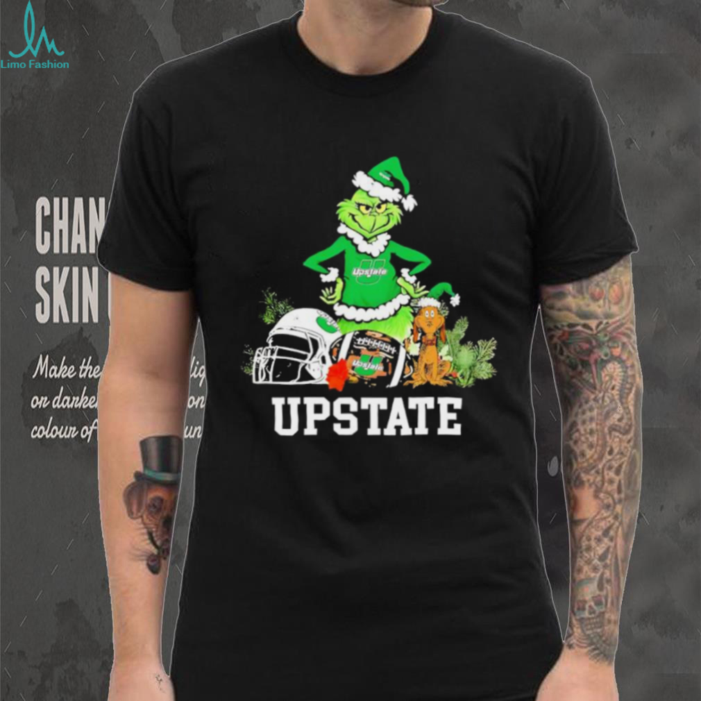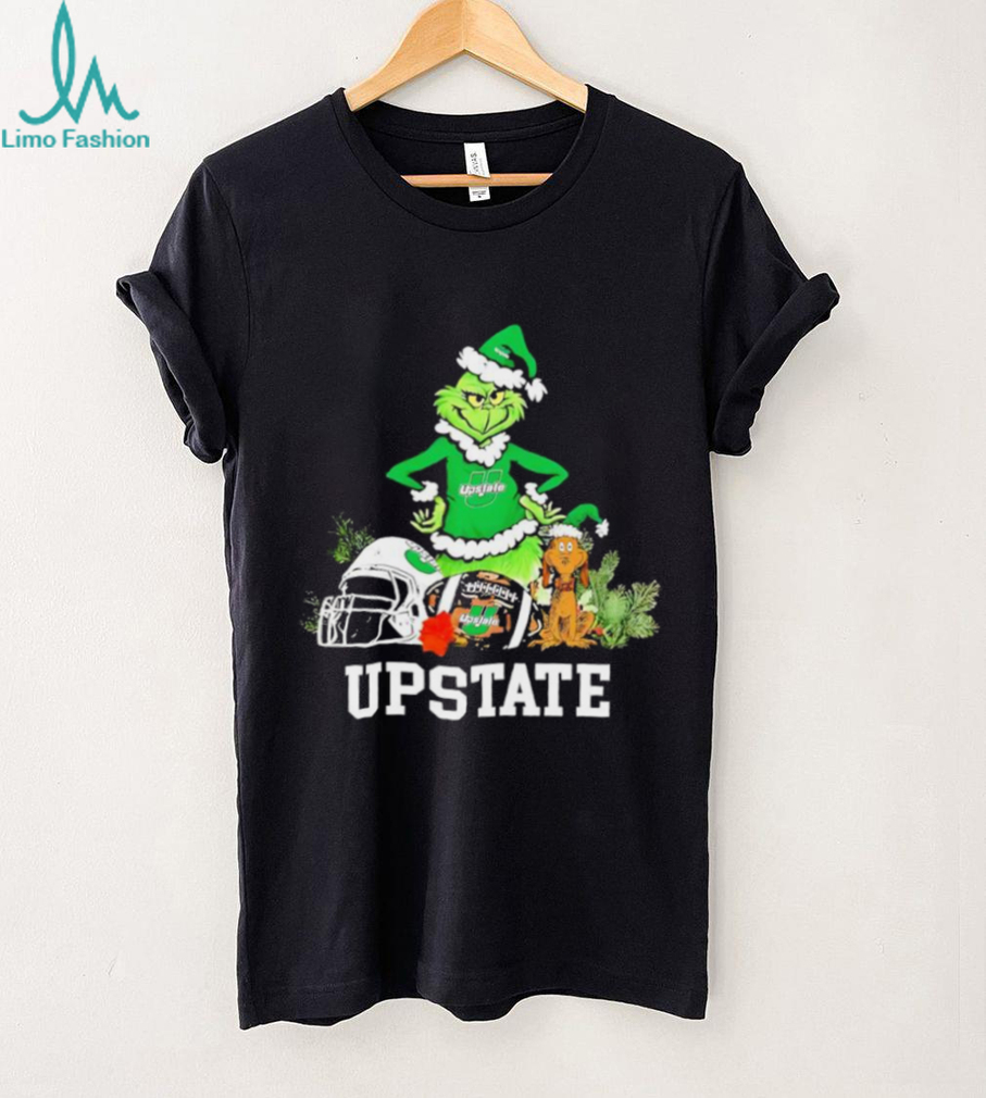 Combine your love for the holidays and college sports with the “USC Upstate The Grinch and Max helmet Christmas 2025 shirt”. This unique design features the classic Grinch and Max alongside the USC Upstate Spartans’ helmet, making it a perfect pick for fans wanting to show off their team spirit during the festive season.