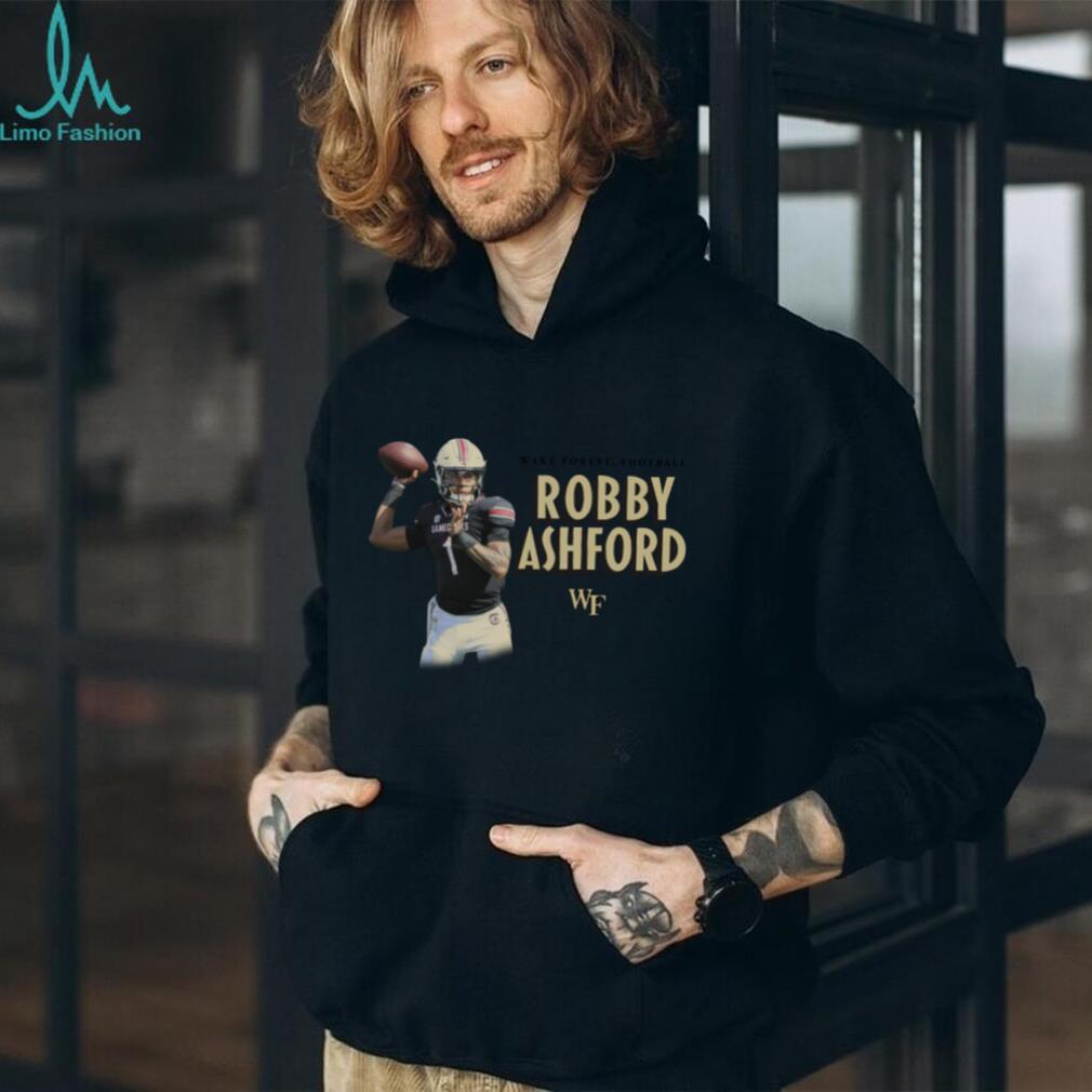 This Wake Forest Robby Ashford tee isn’t your run-of-the-mill fan apparel. It’s for those who want to show their Demon Deacon pride with a bit of artistic flair. The illustrated design captures Ashford’s energy, making it a conversation starter wherever you go. Made from a soft, breathable cotton blend, it keeps you comfortable whether you’re cheering in the stadium or hanging out with friends. Available in a range of sizes, it offers a relaxed fit that’s perfect for any Wake Forest fan. This shirt solves the problem of wanting to support your team in a unique and stylish way. It is Unique value proposition and main selling points are the illustrated design, comfortable material, and perfect fit for game day or everyday wear.
