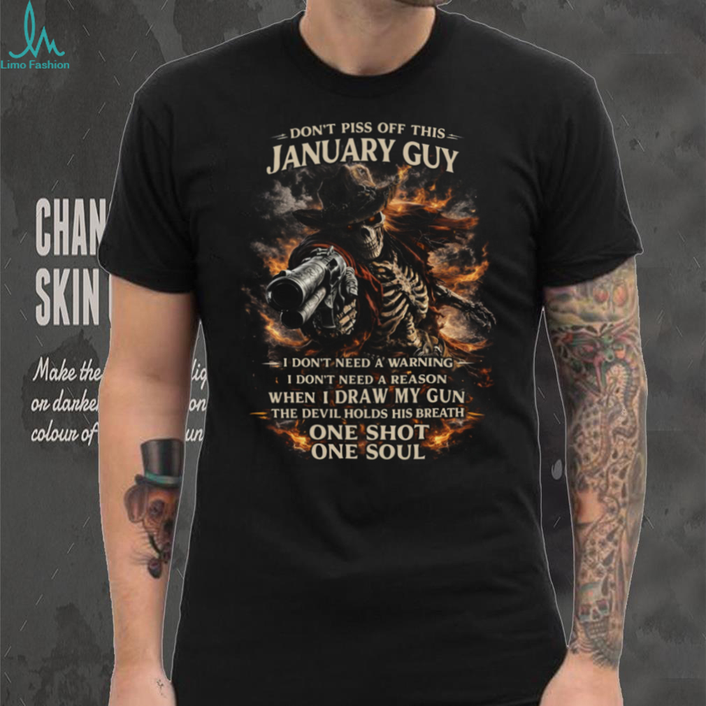 (Warning January Guy Cowboy Skeleton T Shirt One Shot One Soul Graphic)Warning January Guy Cowboy Skeleton T Shirt One Shot One Soul Graphic, Treat yourself or make a great gift for your loved ones