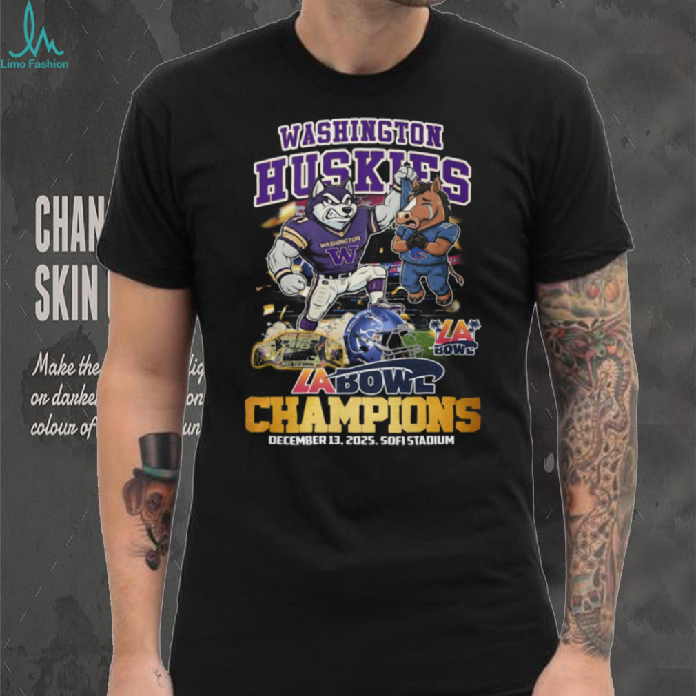 ()Washington Huskies vs Boise State Broncos LA Bowl Champions 2025 Mascot T Shirt, Treat yourself or make a great gift for your loved ones