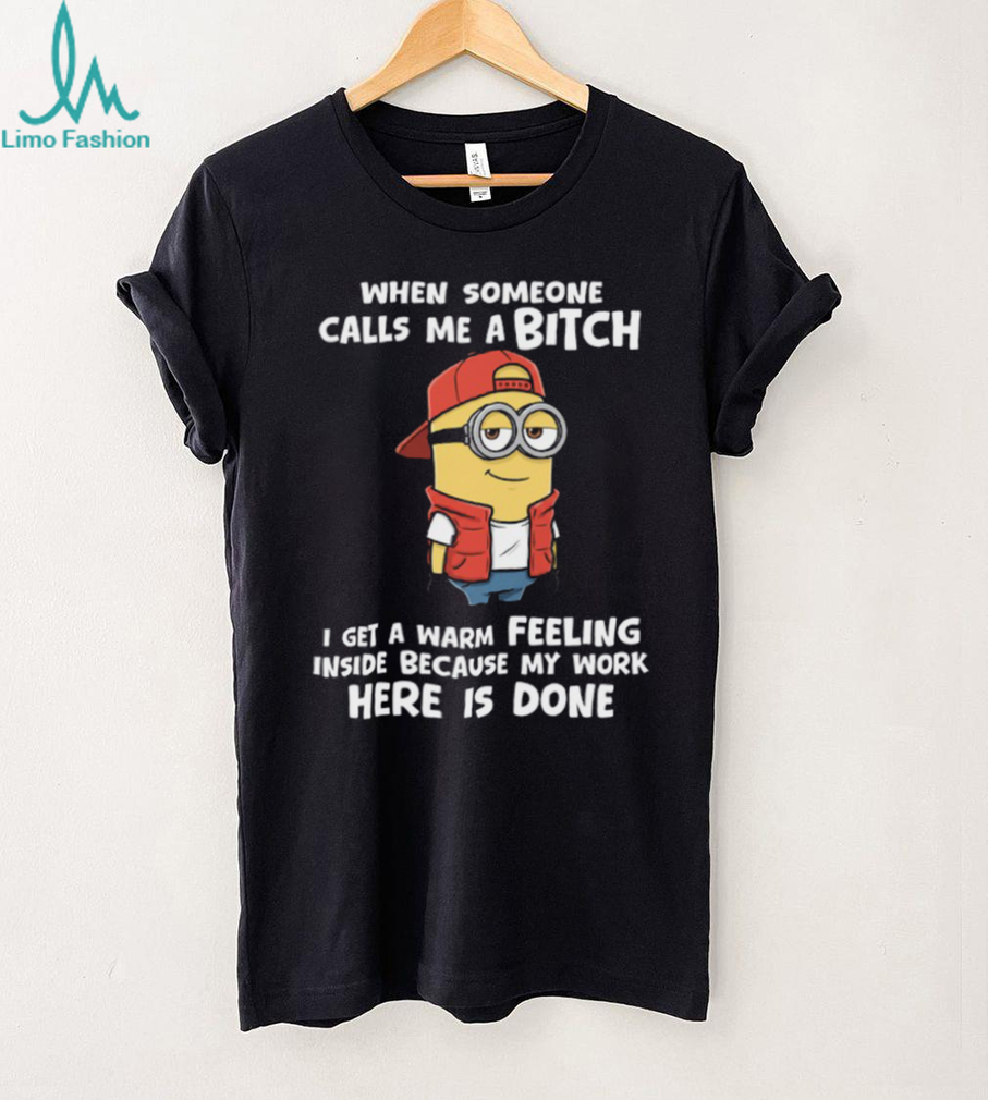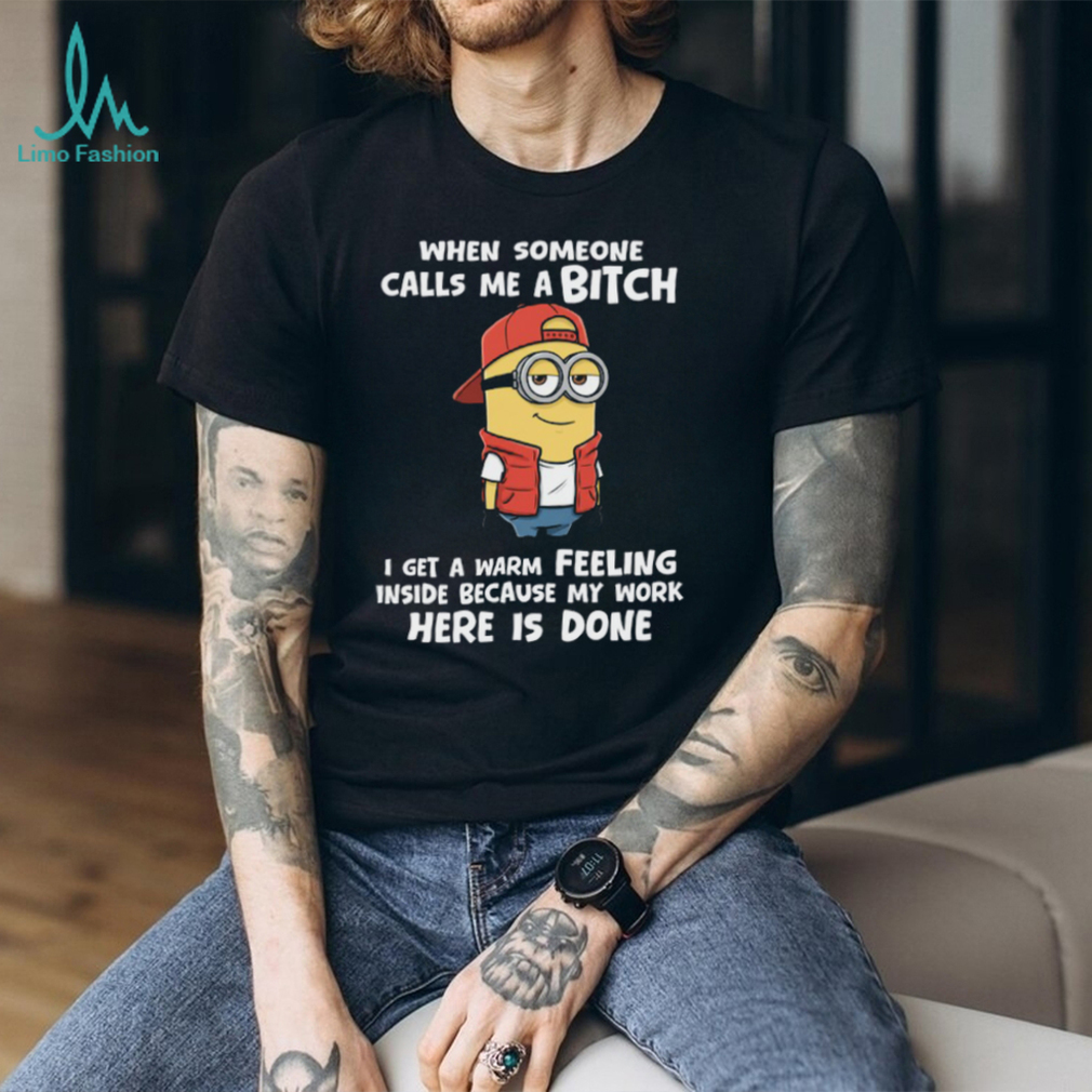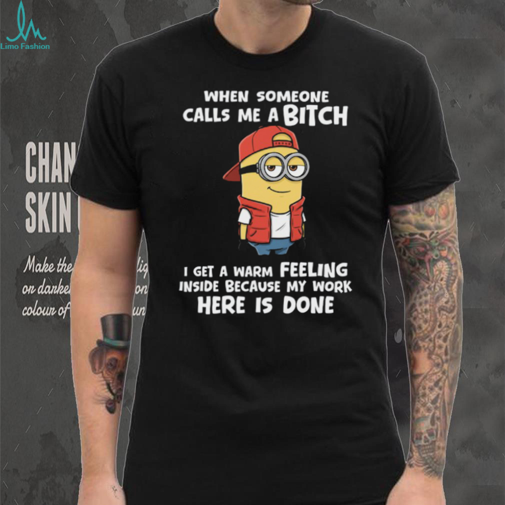 ()When Someone Calls Me Abitch I Get A Warm Feeling Inside Because My Work Here Is Done Minion Shirt, Treat yourself or make a great gift for your loved ones
