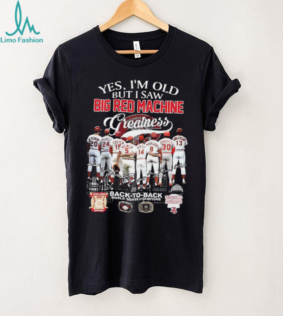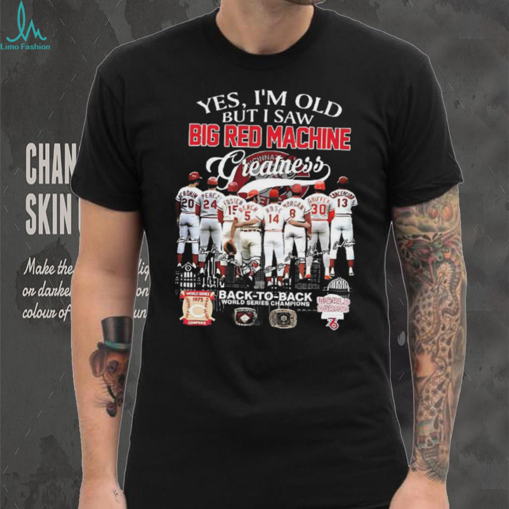 (Yes I’m old but I saw Big Red Machine greatness back to back world series Champions signature T shirt)Yes I’m old but I saw Big Red Machine greatness back to back world series Champions signature T shirt, Treat yourself or make a great gift for your loved ones