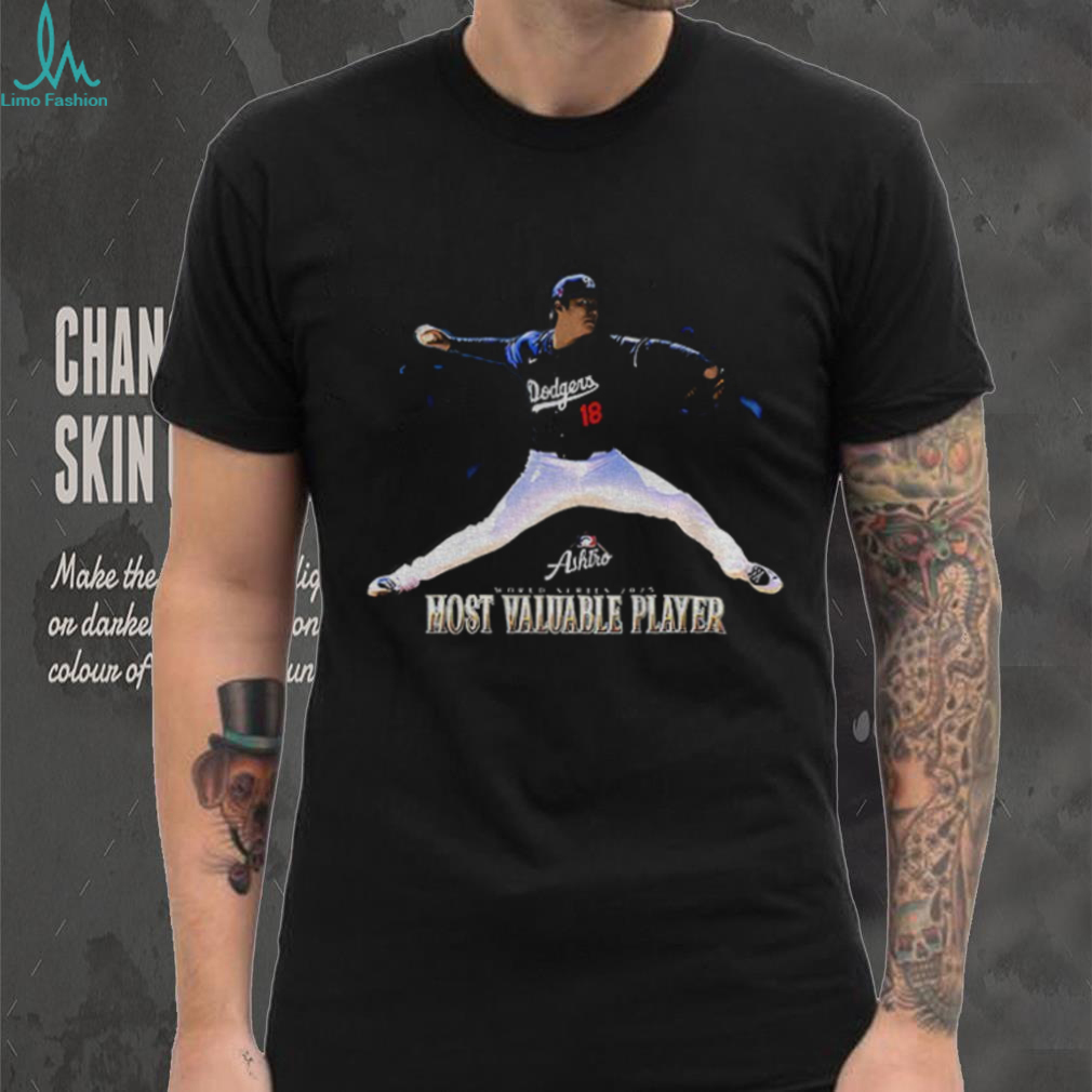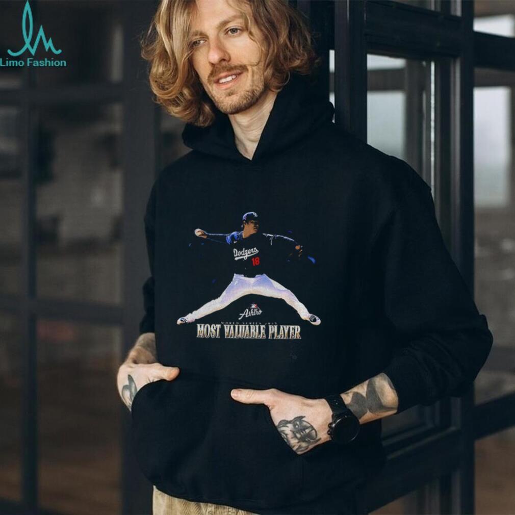 Yoshinobu Yamamoto baseball throw Los Angeles Dodgers World Series Most Valuable Player shirt