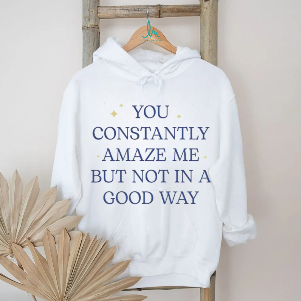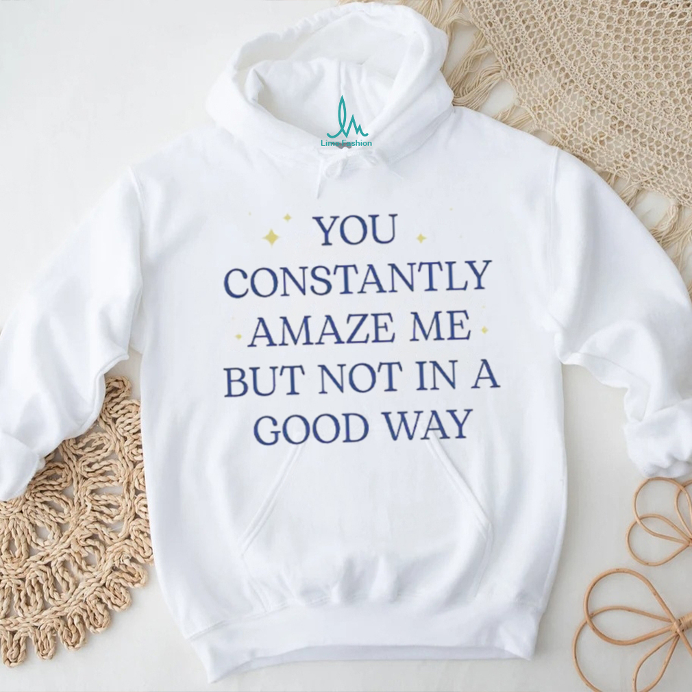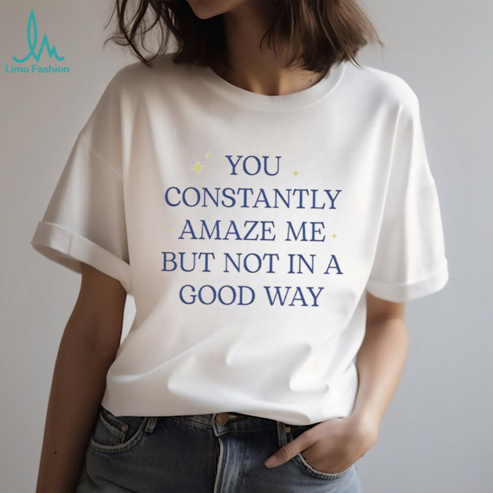(You constantly amaze me but not in a good way letter shirt)Coaching Strategy and the 2026 NFL Draft If the Las Vegas Raiders draft Fernando Mendoza with the No. 1 pick, is he likely to start Week 1 next season? It will depend on many factors, including who is on the coaching staff and whether they choose to market new You constantly amaze me but not in a good way letter shirt featuring the rookie’s name immediately. The Raiders may not have any choice but to start him unless they want to let ineffective veterans like Geno Smith or Kenny Pickett lose more games for Las Vegas while the rookie develops on the bench.